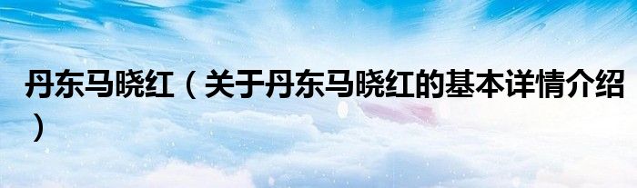 丹东马晓红(关于丹东马晓红的基本详情介绍)