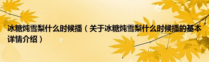 本文关于冰糖炖雪梨什么时候播的基本详情介绍就讲解完毕,希望对大家有所帮助。
