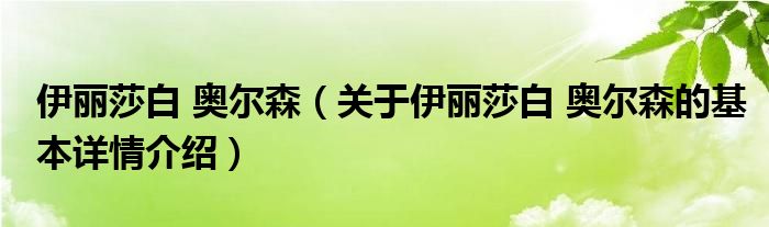 本文关于伊丽莎白 奥尔森的基本详情介绍就讲解完毕,希望对大家有所帮助。