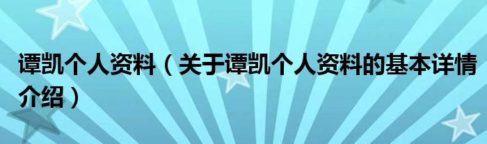 谭凯个人资料(关于谭凯个人资料的基本详情介绍)