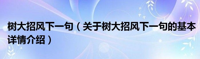 树大招风下一句(关于树大招风下一句的基本详情介绍)