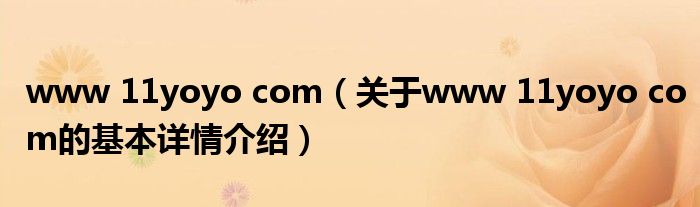 本文关于www 11yoyo com的基本详情介绍就讲解完毕,希望对大家有所帮助。