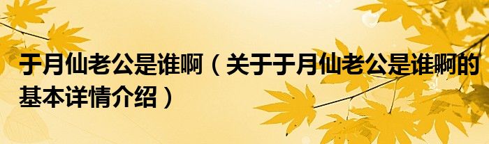 于月仙老公是谁啊(关于于月仙老公是谁啊的基本详情介绍)