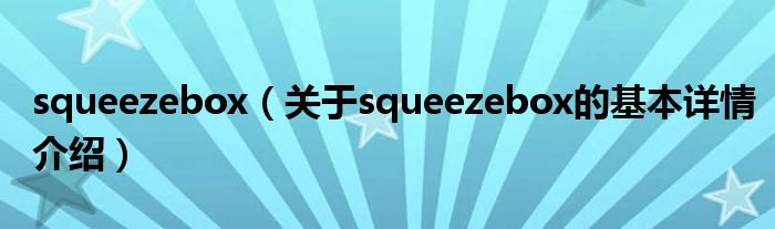 大家好我是小蝌蚪,squeezebox,关于squeezebox的基本详情介绍很多人还不知道,那么现在让我们一起来看看吧!