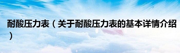 本文关于耐酸压力表的基本详情介绍就讲解完毕,希望对大家有所帮助。