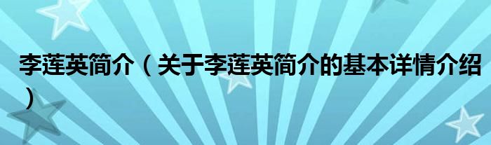 李莲英简介(关于李莲英简介的基本详情介绍)