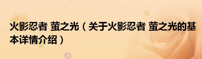 火影忍者 萤之光(关于火影忍者 萤之光的基本详情介绍)