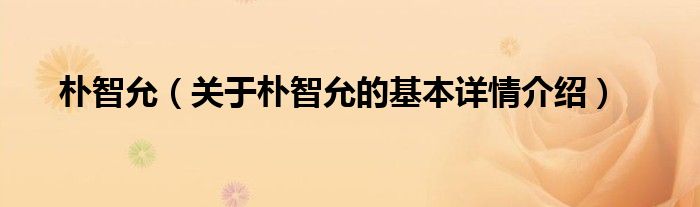 本文关于朴智允的基本详情介绍就讲解完毕,希望对大家有所帮助。