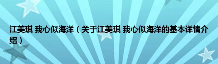 江美琪 我心似海洋(关于江美琪 我心似海洋的基本详情介绍)