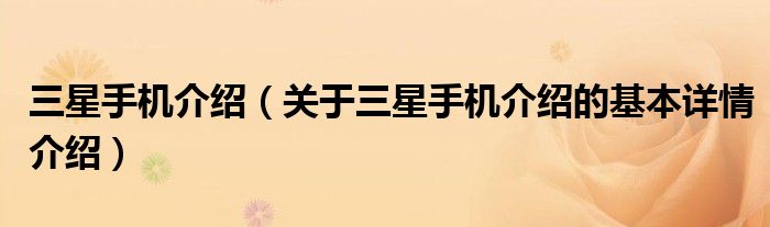 三星手机介绍(关于三星手机介绍的基本详情介绍)