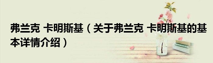 本文关于弗兰克 卡明斯基的基本详情介绍就讲解完毕,希望对大家有所帮助。