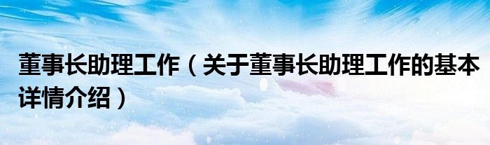 董事长助理工作(关于董事长助理工作的基本详情介绍)