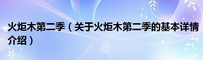 火炬木第二季(关于火炬木第二季的基本详情介绍)