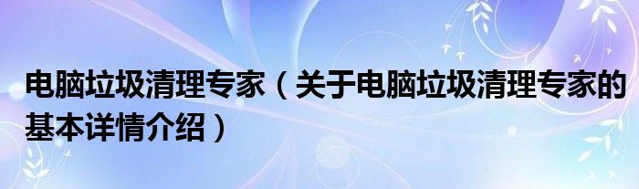 电脑垃圾清理专家(关于电脑垃圾清理专家的基本详情介绍)
