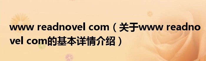 本文关于www readnovel com的基本详情介绍就讲解完毕,希望对大家有所帮助。
