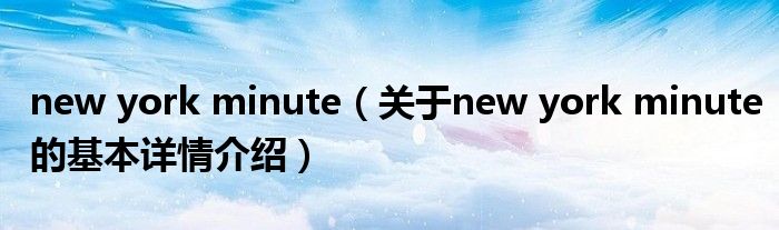 本文关于new york minute的基本详情介绍就讲解完毕,希望对大家有所帮助。