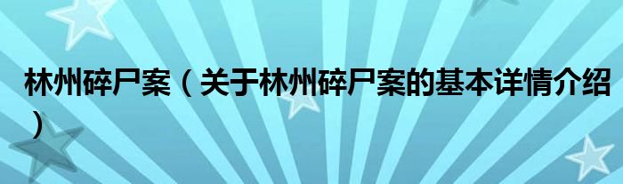 林州碎尸案(关于林州碎尸案的基本详情介绍)