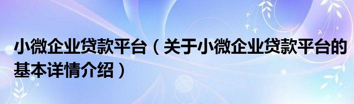 本文关于小微企业贷款平台的基本详情介绍就讲解完毕,希望对大家有所帮助。