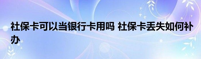社保卡可以当银行卡用吗 社保卡丢失如何补办