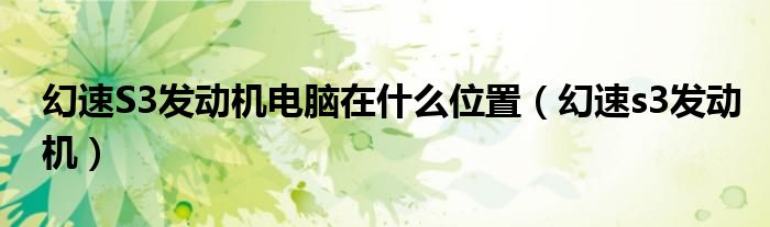 大家好,综合小编来为大家讲解下。幻速S3发动机电脑在什么位置,幻速s3发动机这个很多人还不知道,现在让我们一起来看看吧!