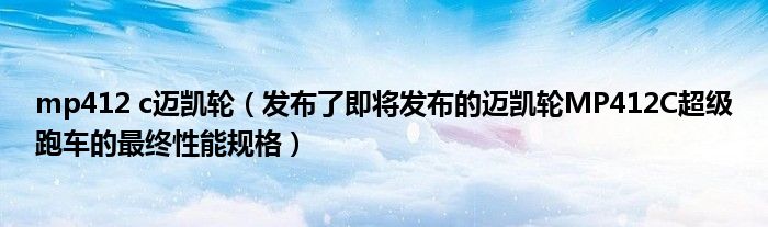 mp412 c迈凯轮(发布了即将发布的迈凯轮MP412C超级跑车的最终性能规格)