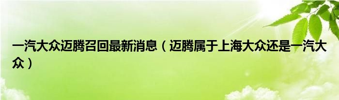 一汽大众迈腾召回最新消息(迈腾属于上海大众还是一汽大众)