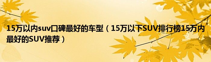 15万以内suv口碑最好的车型(15万以下SUV排行榜15万内最好的SUV推荐)
