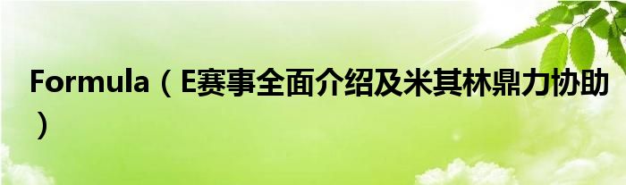 Formula(E赛事全面介绍及米其林鼎力协助)