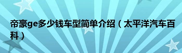 大家好,小驾来为大家讲解下帝豪ge多少钱车型简单介绍, 很多人还不知道,现在让我们一起来看看吧!
