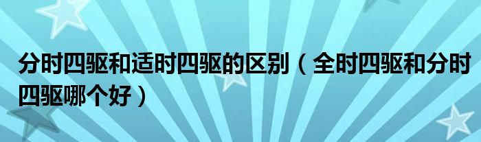 大家好,综合小编来为大家讲解下。分时四驱和适时四驱的区别,全时四驱和分时四驱哪个好这个很多人还不知道,现在让我们一起来看看吧!