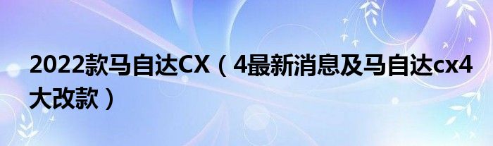2022款马自达CX(4最新消息及马自达cx4大改款)