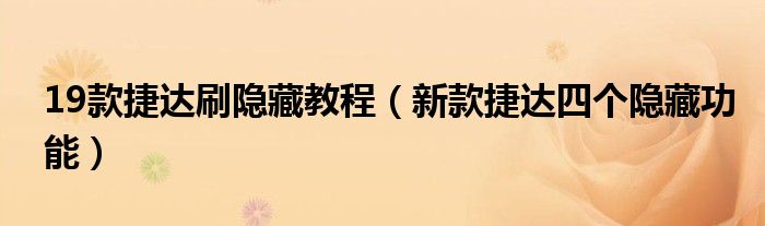 19款捷达刷隐藏教程(新款捷达四个隐藏功能)