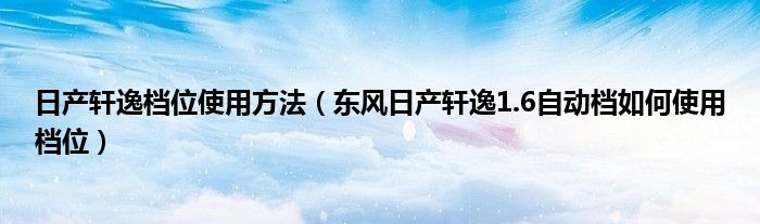 本文日产轩逸档位使用方法,东风日产轩逸1.6自动档如何使用档位到此分享完毕,希望对大家有所帮助。
