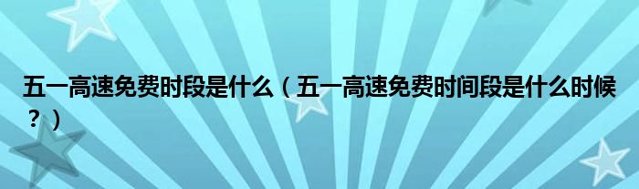 五一高速免费时段是什么(五一高速免费时间段是什么时候?)