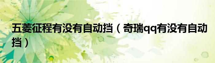 大家好,小太阳来为大家讲解下五菱征程有没有自动挡,奇瑞qq有没有自动挡很多人还不知道,现在让我们一起来看看吧!