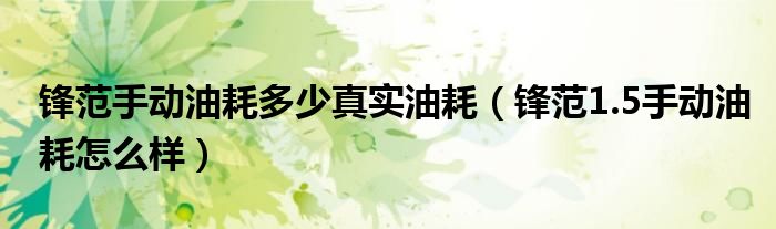 锋范手动油耗多少真实油耗(锋范1.5手动油耗怎么样)