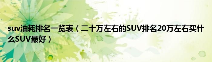 suv油耗排名一览表(二十万左右的SUV排名20万左右买什么SUV最好)