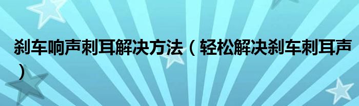 大家好,综合小编来为大家讲解下。刹车响声刺耳解决方法,轻松解决刹车刺耳声这个很多人还不知道,现在让我们一起来看看吧!