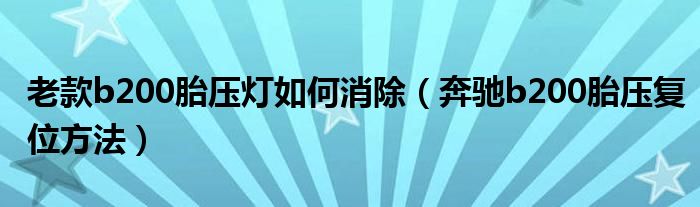 大家好,综合小编来为大家讲解下。老款b200胎压灯如何消除,奔驰b200胎压复位方法这个很多人还不知道,现在让我们一起来看看吧!