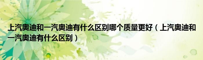 上汽奥迪和一汽奥迪有什么区别哪个质量更好(上汽奥迪和一汽奥迪有什么区别)