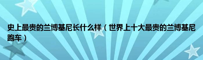大家好,小太阳来为大家讲解下史上最贵的兰博基尼长什么样,世界上十大最贵的兰博基尼跑车很多人还不知道,现在让我们一起来看看吧!