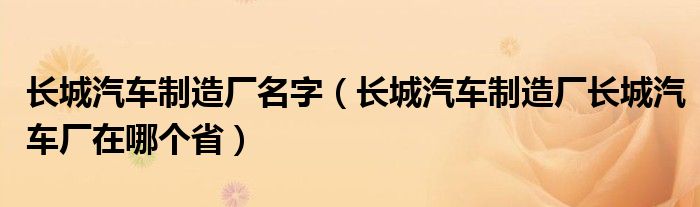 长城汽车制造厂名字(长城汽车制造厂长城汽车厂在哪个省)