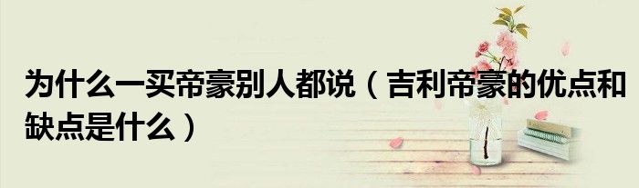 为什么一买帝豪别人都说(吉利帝豪的优点和缺点是什么)
