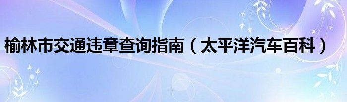 1、对于榆林市交通违章查询指南的内容,最近很多人很困惑,一直在咨询小编,今天太平洋汽车网小编针对该问题,梳理了以下内容,希望可以帮您答疑解惑。