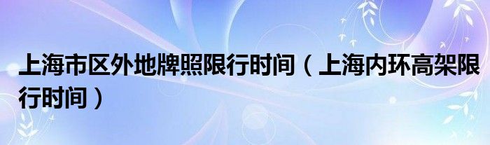 本文上海市区外地牌照限行时间,上海内环高架限行时间到此分享完毕,希望对大家有所帮助。