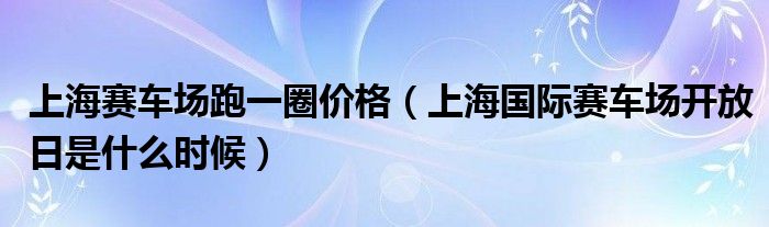 上海赛车场跑一圈价格(上海国际赛车场开放日是什么时候)