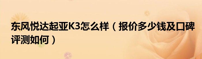 大家好,综合小编来为大家讲解下。东风悦达起亚K3怎么样,报价多少钱及口碑评测如何这个很多人还不知道,现在让我们一起来看看吧!