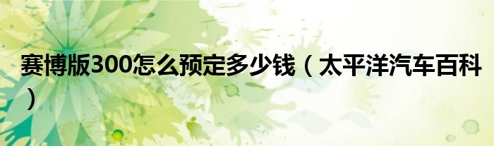 大家好,小驾来为大家讲解下赛博版300怎么预定多少钱, 很多人还不知道,现在让我们一起来看看吧!