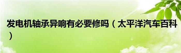 大家好,小驾来为大家讲解下发电机轴承异响有必要修吗, 很多人还不知道,现在让我们一起来看看吧!