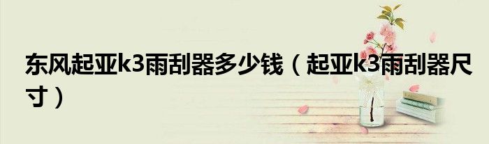 大家好,综合小编来为大家讲解下。东风起亚k3雨刮器多少钱,起亚k3雨刮器尺寸这个很多人还不知道,现在让我们一起来看看吧!